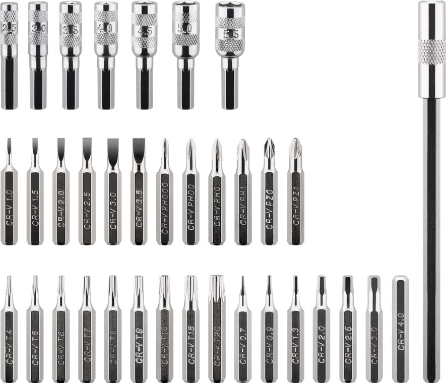 9x Torx: T4, T5, T6, T7, T8, T9, T10, T15, T20