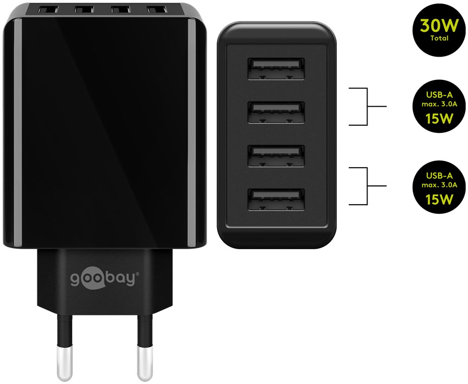 4-way USB charger (30W) black
