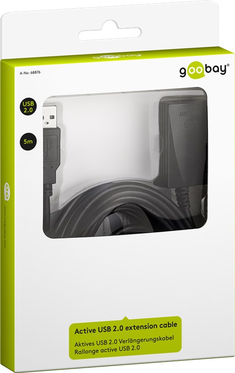 Active USB 2.0 extension cable, gold, black