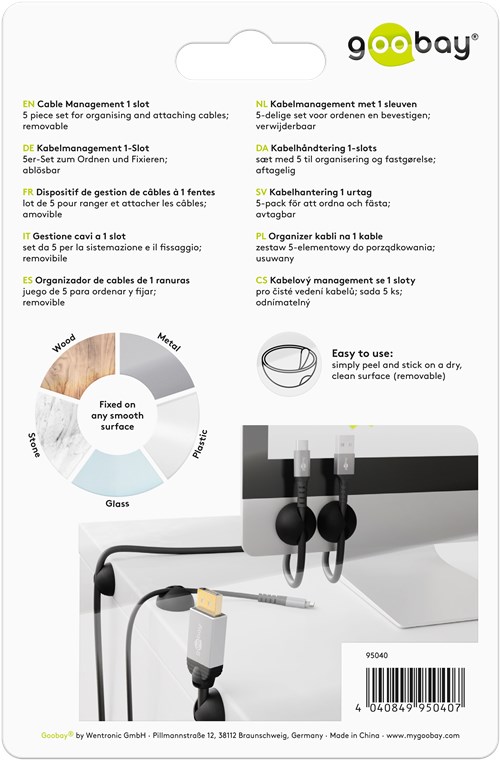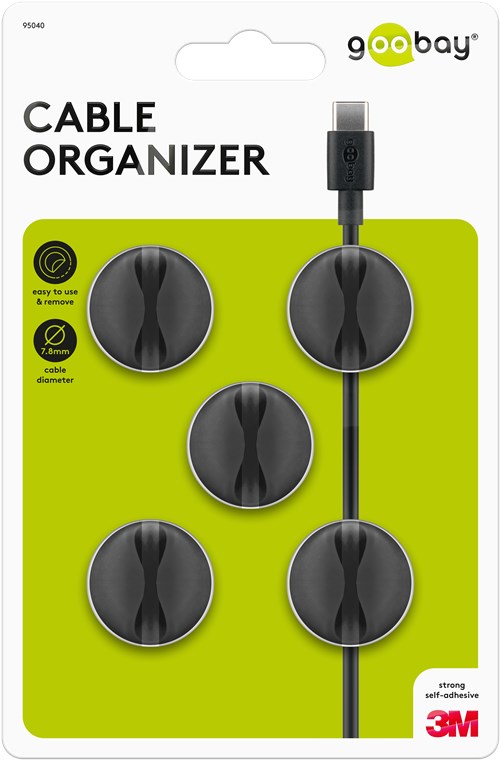 5 piece set for organising and attaching cables; removable