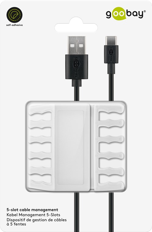 This flexible cable guide fixes cables in handle range and avoids slipping of charging cables or other USB-connections behind and under the desk. It is also perfectly usable for routing cables under the desk.