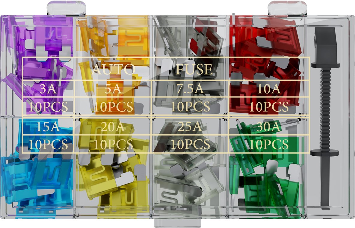 • each 10 pcs.: 3 A; 5 A; 7.5 A; 10 A; 15 A; 20 A; 25 A; 30 A