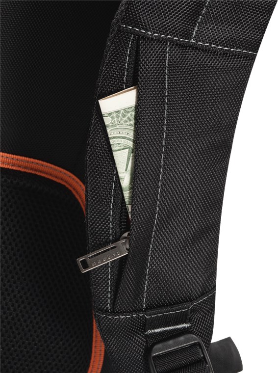 - Wide, ergonomic shoulder straps with zippered stash pocket