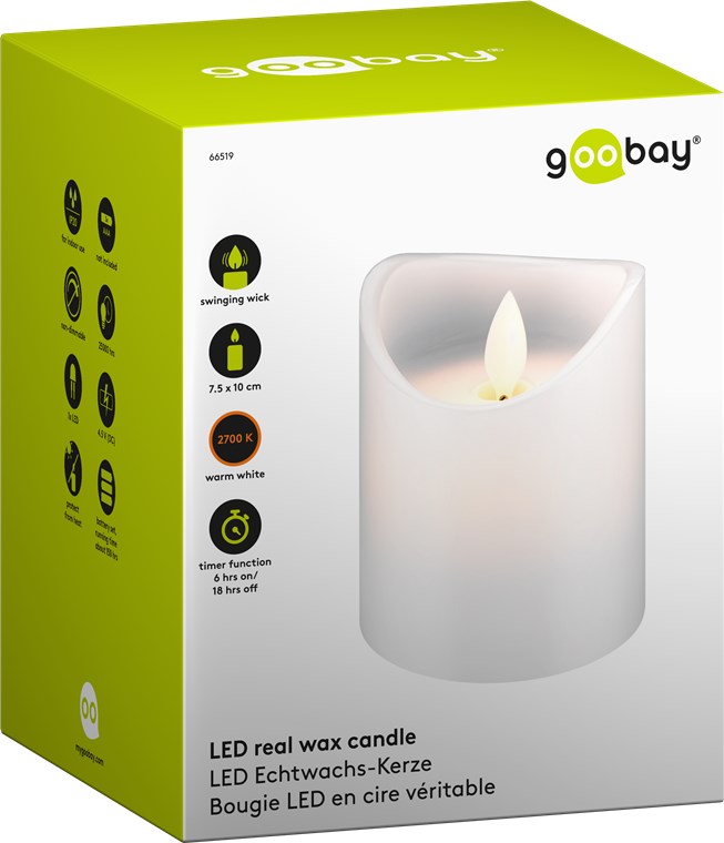 - unique flame effect thanks to moving wick and candle shell made of real wax – hard to distinguish from real candles