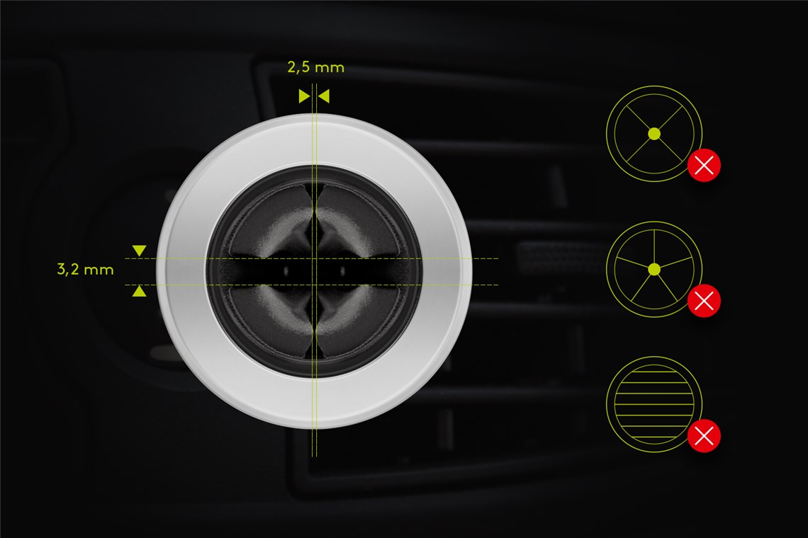 • smart and virtually invisible attachment to the air outlet in a car (option)