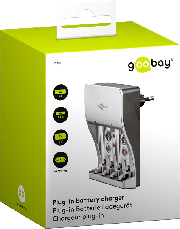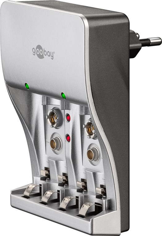 charges up to four AAA/Micro or AA/Mignon and two 9 V batteries