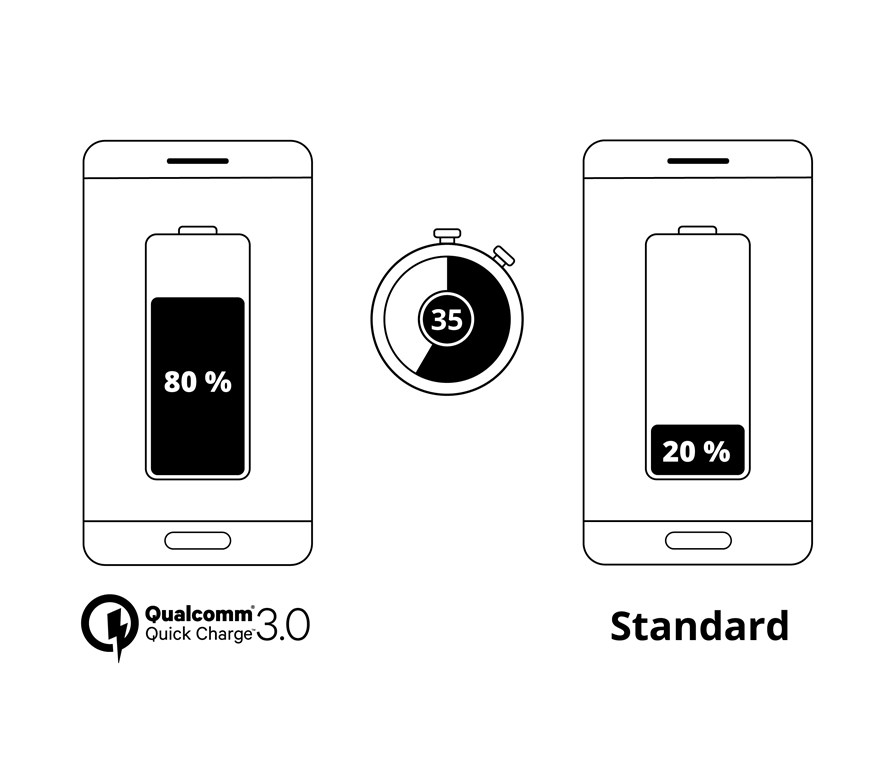 - Quick charger with QC 3.0 charges devices in the cigarette lighter up to 4x faster than conventional chargers.