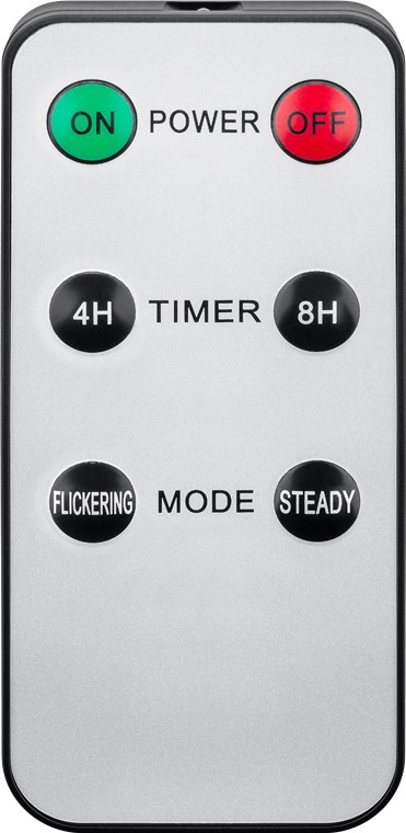 • with 6-key-remote - ON / OFF, Timer 4hrs / 8hrs, flickering & steady light