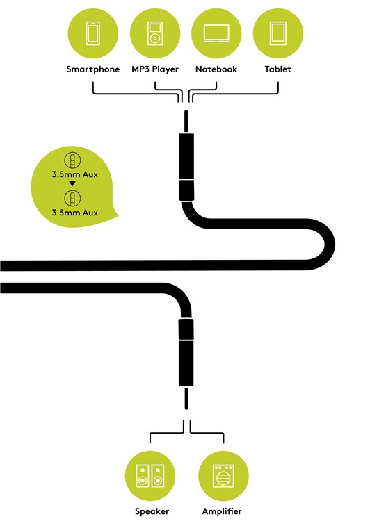 • for connecting smartphones, tablets or MP3 players with speakers, car radios or HiFi entertainment systems