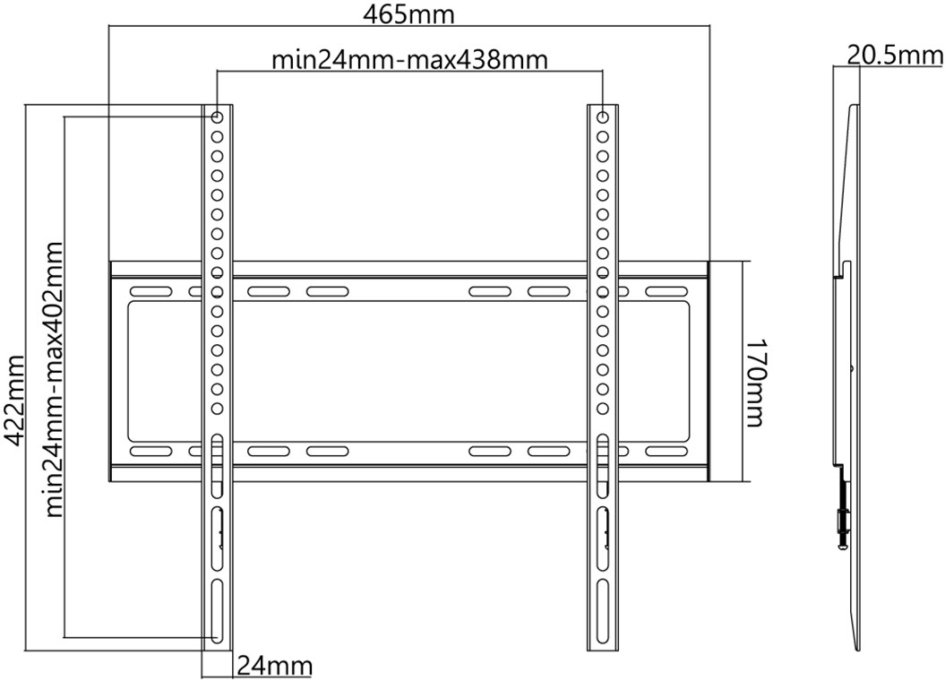 • The extremely flat wallmount keeps the TV elegantly flat and space-saving on the wall with only 20.5mm.