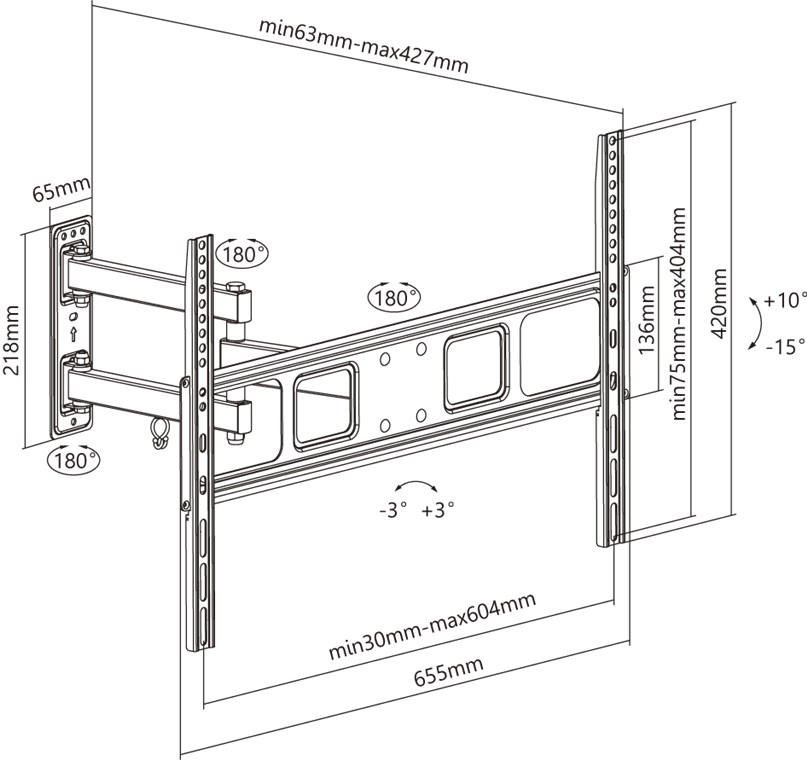 - The wallmount keeps the TV in the position with only 63mm elegantly flat and space-saving on the wall and can be extended up to 427mm to achieve the optimal viewing angle.