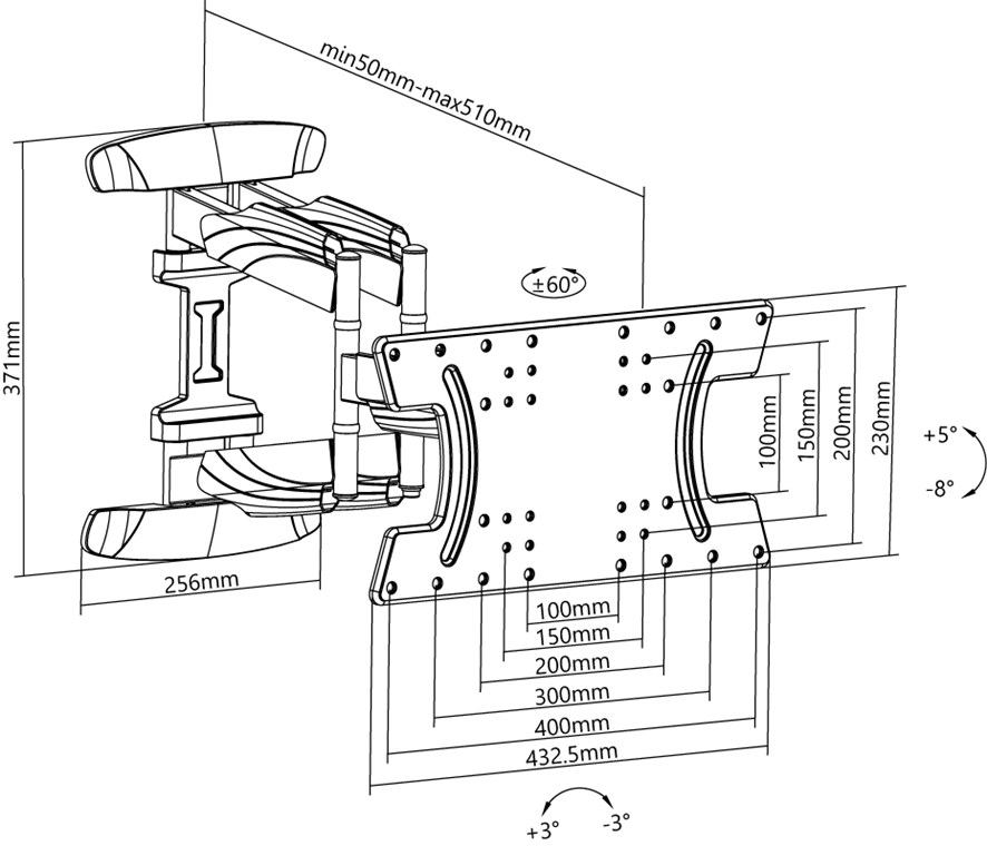 - The wallmount keeps the TV in the position with only 50mm elegantly flat and space-saving on the wall and can be extended up to 510mm to achieve the optimal viewing angle.