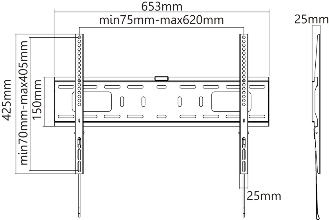 • The extremely flat wallmount keeps the TV elegantly flat and space-saving on the wall with only 25mm.