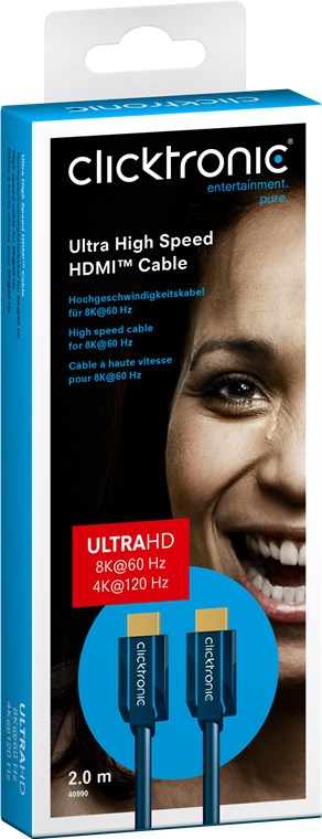 Developed to make the future come to you! The Clicktronic ultra-high-speed HDMI™ cable produces a razor-sharp and stunningly natural image, and also boasts the fastest transmission speeds on the market today. Its pure materials, precise processing and cutting-edge technology enable you to connect your television with other devices and the Internet.