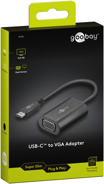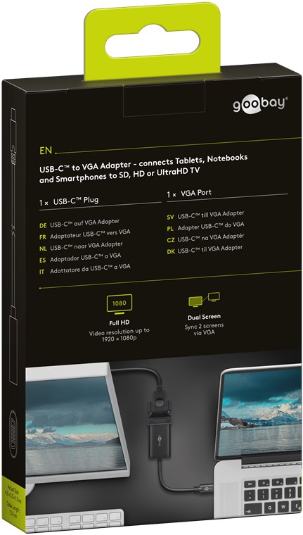 The USB-C™ to VGA adapter mirrors your signals from USB-C™ to VGA devices. The adapter supports resolutions up to 1920*1080p@60Hz and is characterised by its simple operation.