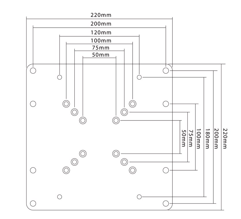 • The adapter extends VESA hole spacing from 200 mm x 200 mm up to 400 mm x 400 mm.