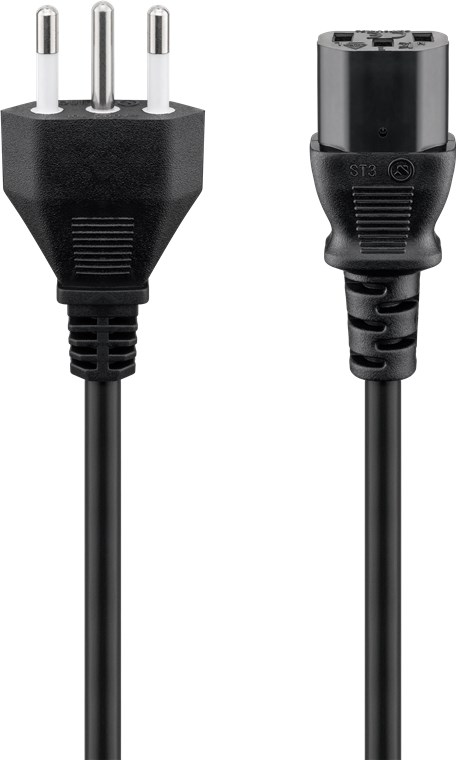 Swiss male (type J, SEV 1011) > Device socket C13 (IEC connection)