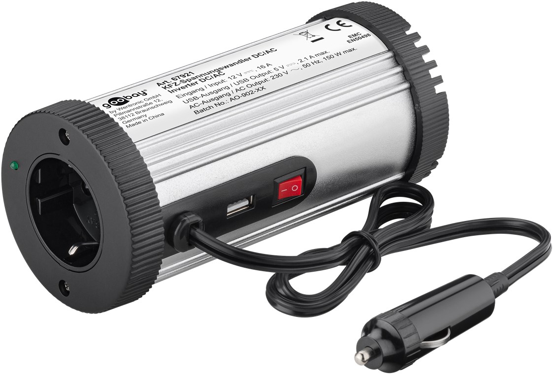 converts 12 V DC into 230 V AC